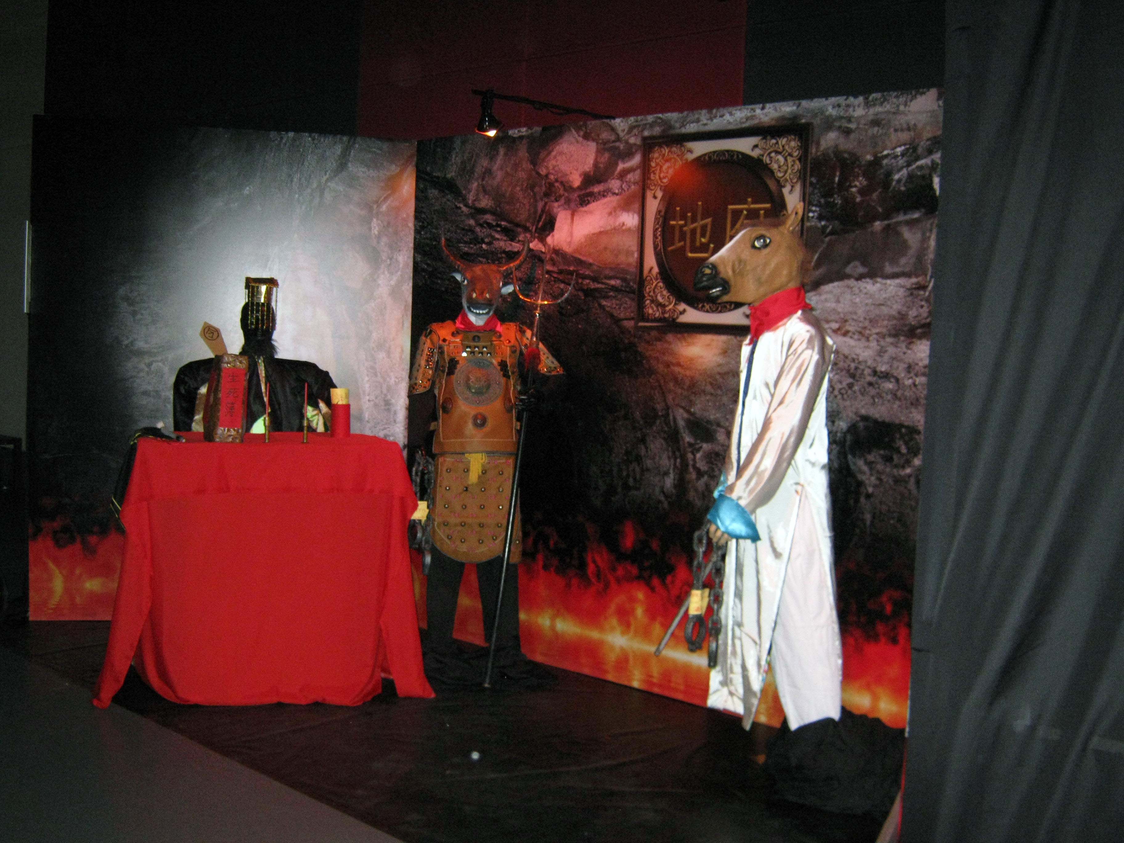 But unfortunately when we got there, all we saw was an exhibition of popular monsters that had ever appeared onscreen or told of around smokey campfires plus roaming scary characters who tried their best to sneak up on you. =x
