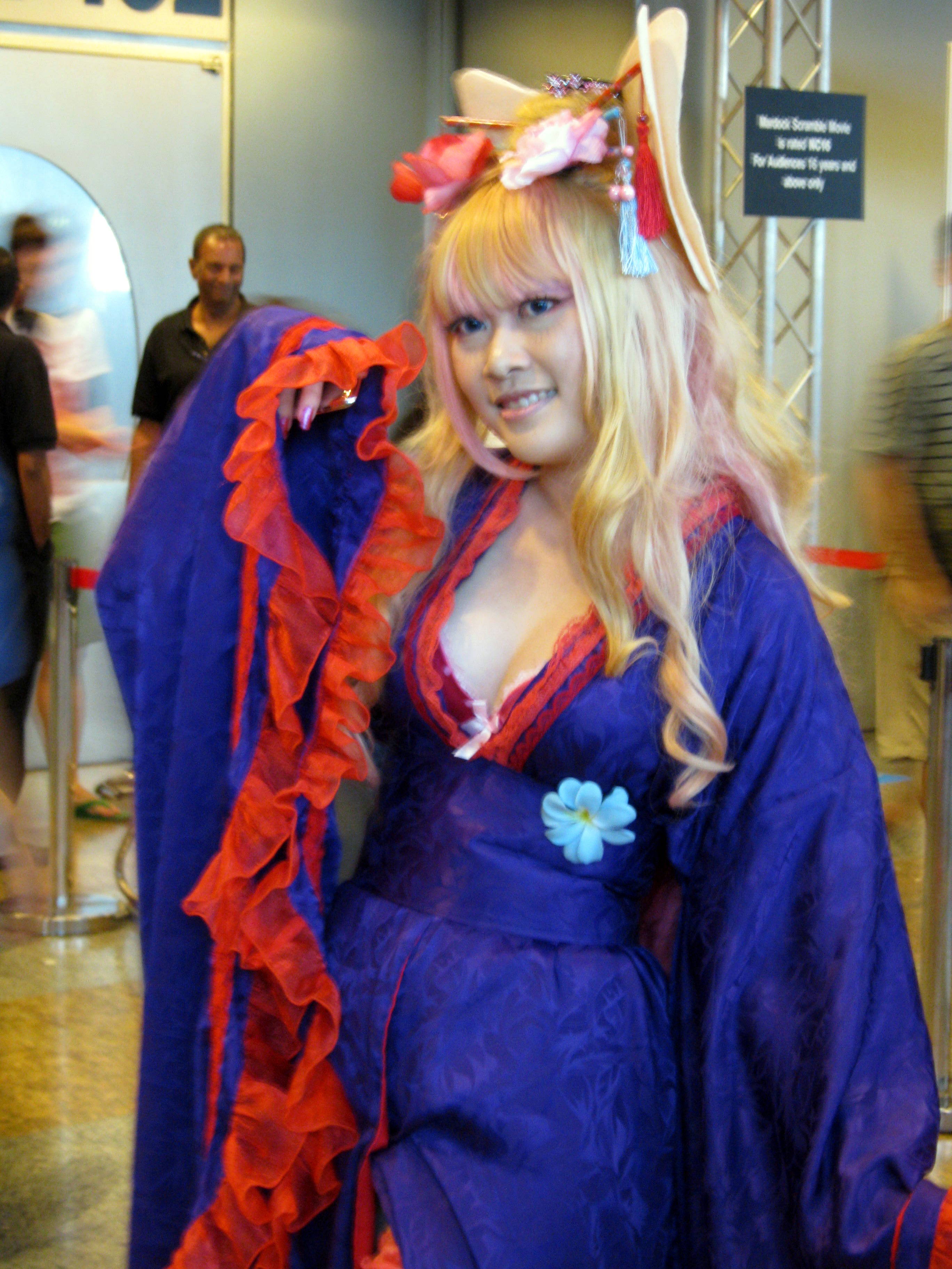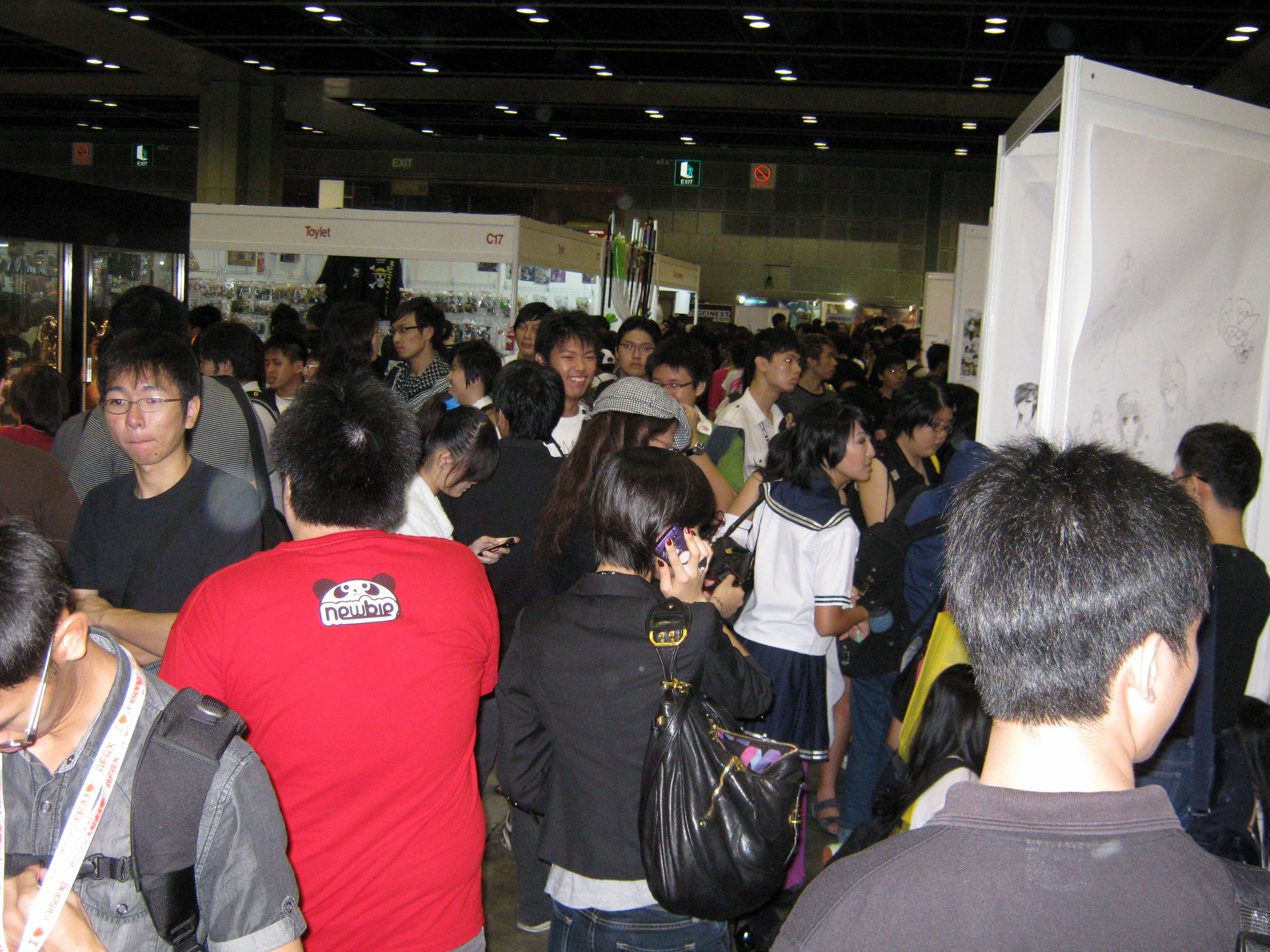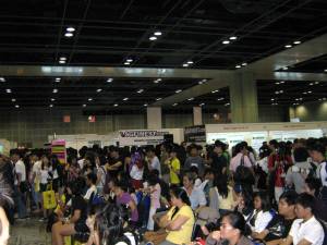 Ahem…anyways, we didn’t stay long in the AFA hall because the place was so darn crowded. It was quite literally a feat to get from one end of the hall to the other but luckily we ran into malc’s friend who was an AFA helper and she told us we could get nice big (and free!!) photos taken against THREE different backdrops. Not ones to miss out on a freebie or three, we quickly availed ourselves of the opportunity to cam-whore. LOL. Would have shown you the pictures of the backdrops but the photos I took turned out blurry. 😦