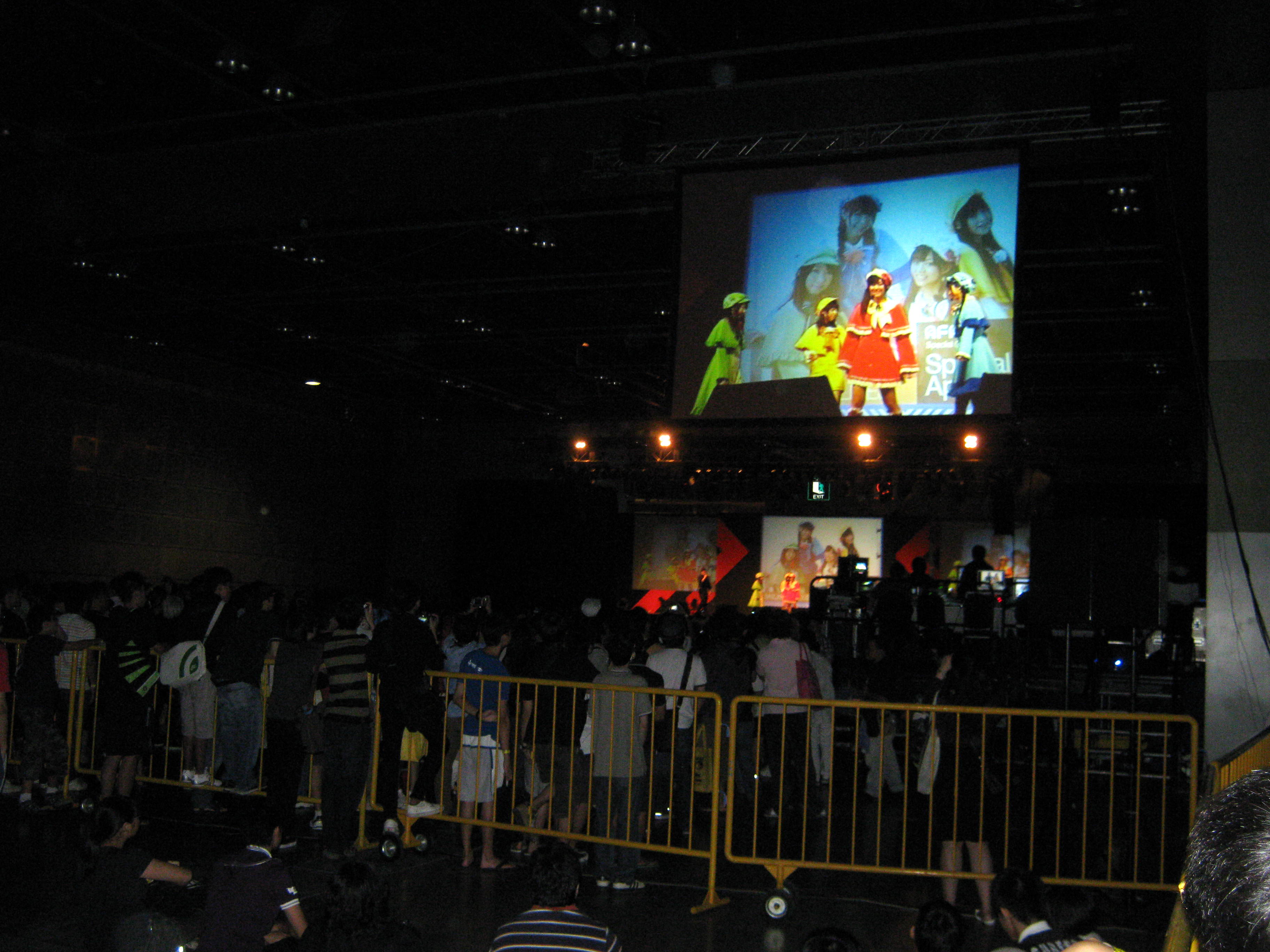 It was totally amazing. The audience was on its feet most of the time, with otakus of all sizes and ages jumping and waving their glow sticks as if their lives depended on it. The plump boy beside us was so energetic that we had to move out slightly into the aisle for fear of him hitting us. =x We were sitting next to the aisle so we could just shift slightly to the left.