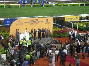 Wah…I bet the trainer/jockey must be quite sad to miss the chance to enter this international race. Even horses were flown down to participate lei. Such a good life. =x