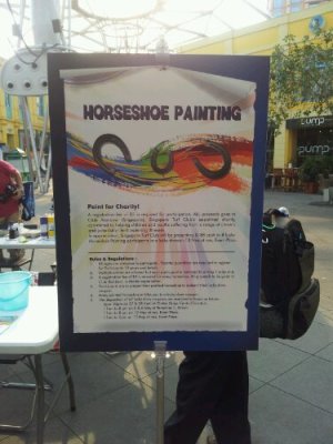 The roadshows had an equine exhibition that introduces you to the world of jockeys and their racehorses. There was also a horseshoe painting contest that not only allows you to be creative, but do your part for your charity too! The registration fee of $5 would go to Club Rainbow. =D